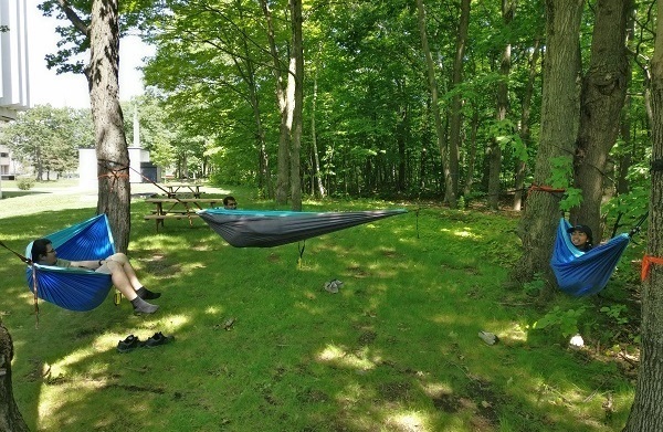 Hamacs, tables de travail portatives, jeux de pétanque et de ping-pong... Dès aujourd’hui, du matériel pour l’extérieur est disponible pour emprunt à la Bibliothèque, afin de vous permettre de profiter du grand air et du soleil sur le campus.